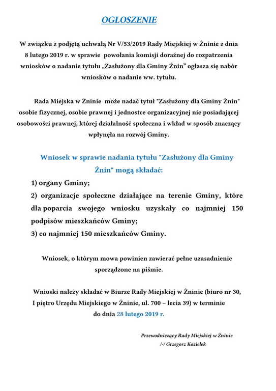 Nadanie tytułu Zasłużony dla Gminy Żnin