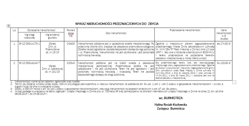 Zachęcamy do zapoznania się z wykazem nieruchomości przeznaczonych do zbycia.