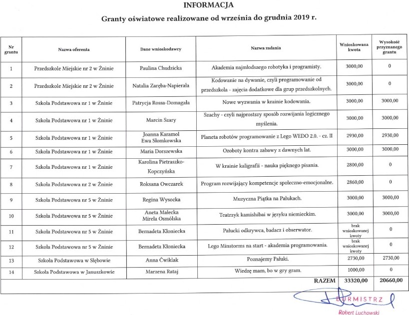 Prezentujemy listę zadań wspieranych grantami oświatowymi w okresie od września do grudnia 2019 roku.