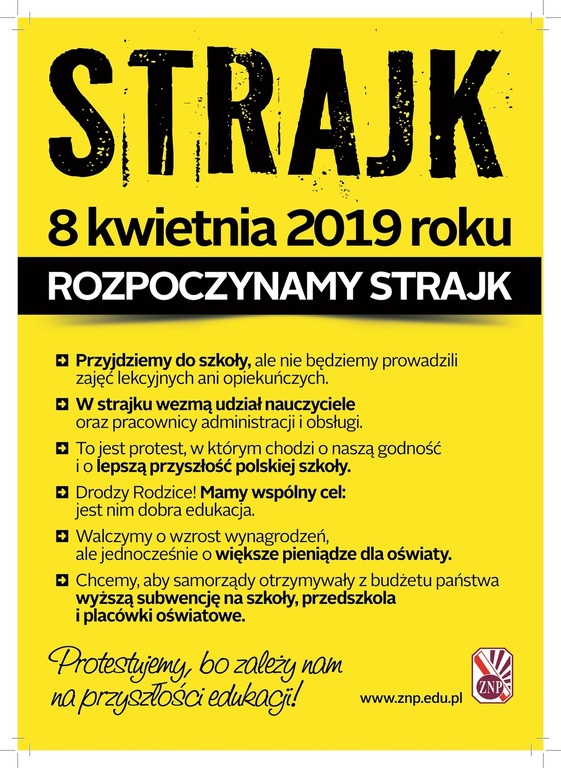 Zachęcamy mieszkańców, a w szczególności rodziców uczniów do zapoznania się z komunikatem Związku Nauczycielstwa Polskiego.