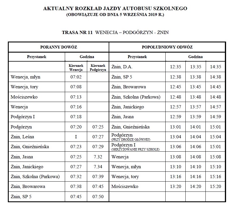 Zachęcamy do zapoznania się z obowiązującym rozkładem jazdy autobusów szkolnych
