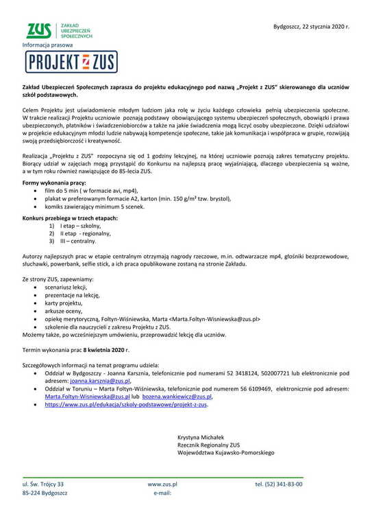 Informacja prasowa Zakładu Ubezpieczeń Społecznych