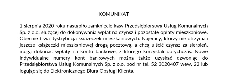 Komunikat Przedsiębiorstwa Usług Komunalnych
